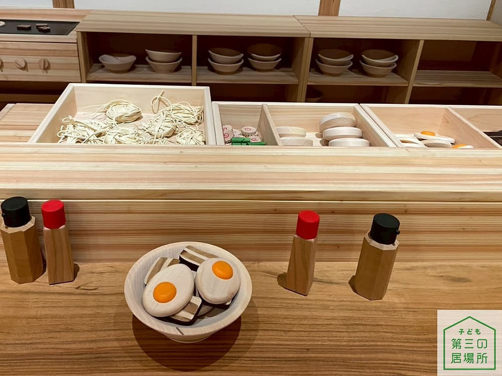 鯛めしやラーメン、お寿司屋さんなど、木でできた具材や食器で本格的なままごとを楽しみました。